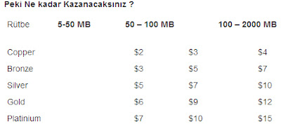 Yani bir video sitesi açsanız ve içine klipler atsanız . 1000 video paylaşsanız , her bir video günde 10 kere indirilse ve her dosyanın boyutu ortalama 50 mb olsa günde 30 $dolar para kazanabilirsiniz..(Bu en düşük ihtimal tabi ,zamanla seviyeniz yükseldikçe daha çok para kazanacaksınız.)